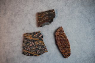 アイアンタイガー、レオパードスキン、二枚貝の化石、渋い色合いですが模様が面白く、購入しました。これもじっくり眺めながら、デザインを考えます。