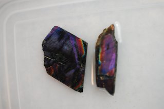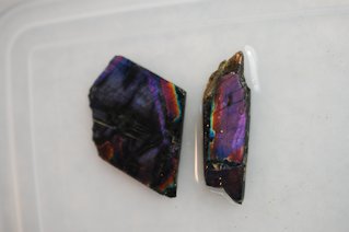 スペクトロライトの中でも最も希少とされる、紫に輝く原石を購入しました。