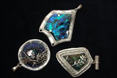 ふたつと無い色彩を持つアクセサリーと歴史を背負うアンティークという側面から、近年ヨーロッパ諸国では宝石に並ぶ人気です。ミネラルフェアでも高品質のものを扱っているブースは、一つだけでした。